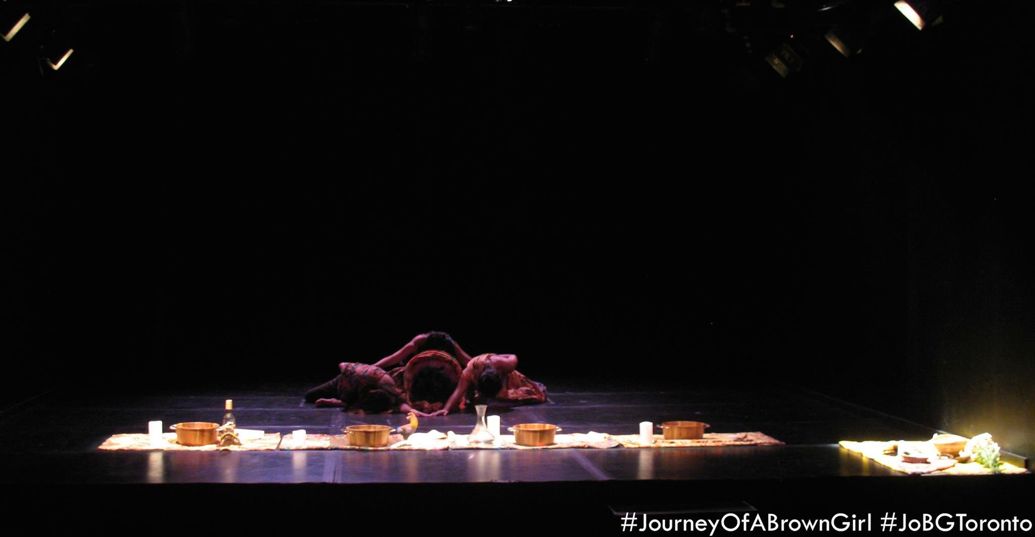 Along with all of this was the care taken of the experience we were bringing through our movement work of The Journey of a Brown Girl. Kapwa Collective secured a beautiful playing space at the Factory Theatre and filled it with so much extra care, from providing Vanessa with care for our baby goddess during rehearsal and performance, to the preparation of the entrance space of the performance surrounding gusts with cultural images and textiles, right down to the beautiful professionally printed posters, flyers and programs. Each performance also had food offerings to the community.