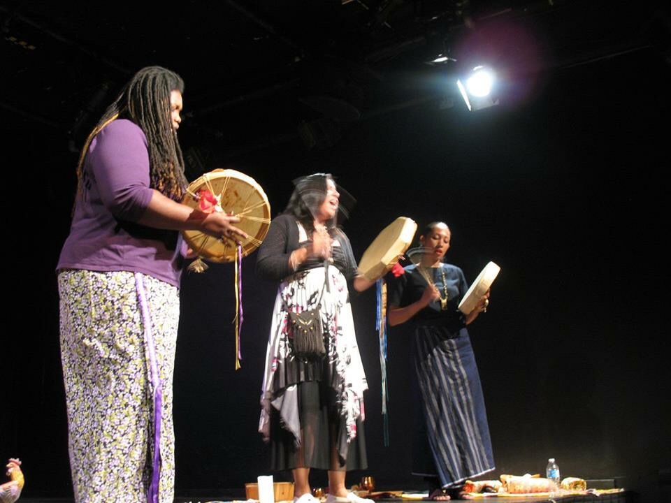 And every night began with community filling the stage with lifted energy that we would take on with our movement on the stage. Our first evening we were blessed with a prayer and ceremony circle of intention and gratitude with Amy Desjarlais (Earthtalker Water Project) and Michelle who were invited by our sister Jen, indigenous drumming and song filled the space and we washed ourselves with life giving water to initiate a blessed performance and gathering of community exchange. We were honored to also have the altar created by Amy sit beside our own in shared sacredness which we honored throughout the show.